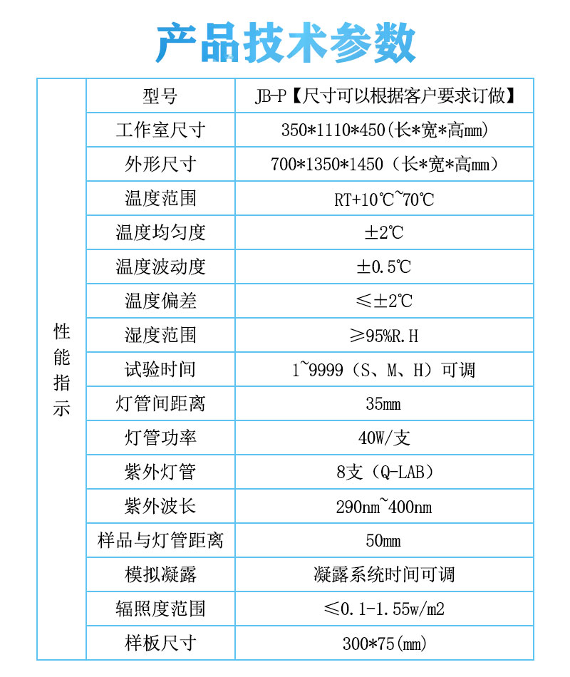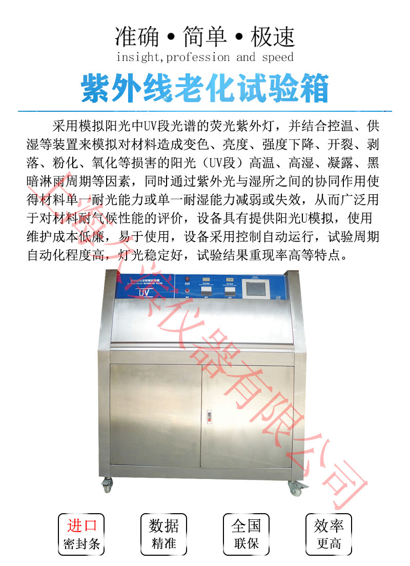 陽(yáng)光和濕氣對(duì)材料的破壞,每年造成數(shù)以萬計(jì)的經(jīng)濟(jì)損失,紫外光耐氣候試驗(yàn)箱可以再現(xiàn)陽(yáng)光、露水所產(chǎn)生的破壞。試驗(yàn)箱通過將待測(cè)材料曝曬放在經(jīng)過控制的陽(yáng)光和濕氣的交互循環(huán)中,同時(shí)提高溫度的方式來進(jìn)行試驗(yàn),試驗(yàn)箱采用紫外線熒光燈模擬陽(yáng)光,同時(shí)通過冷凝的方式模擬濕氣影響。