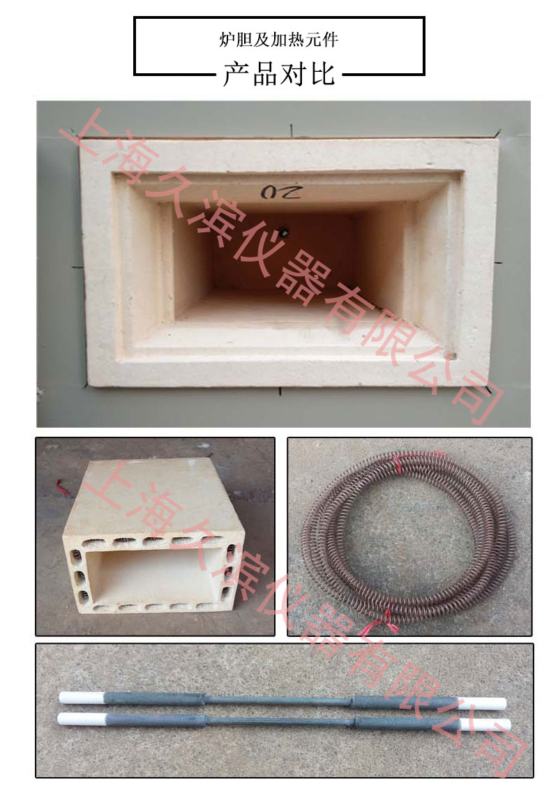 2、工作室為耐火材料制成的爐膛,加熱元件置于其中,爐膛與爐殼間用保溫材料砌筑隔熱;