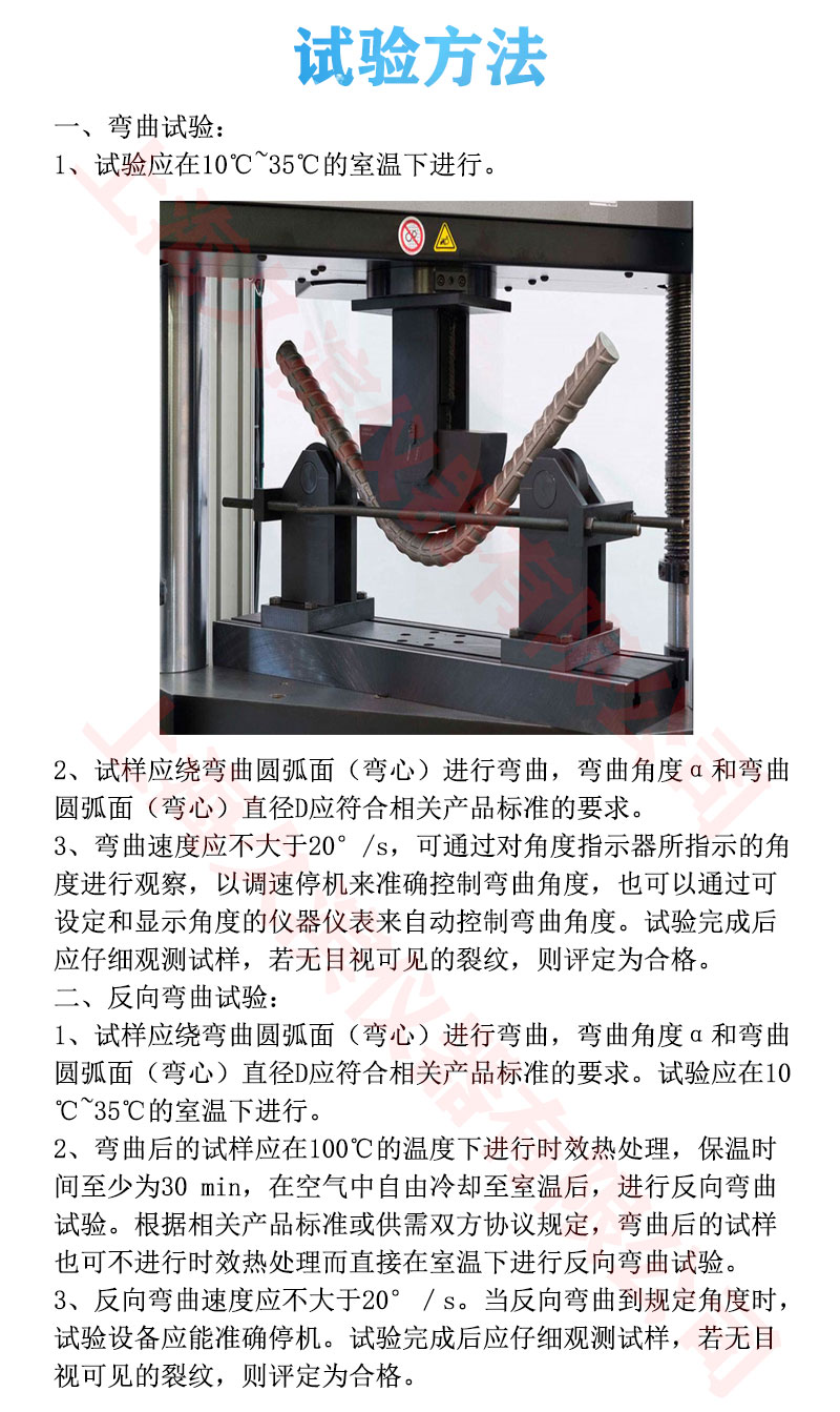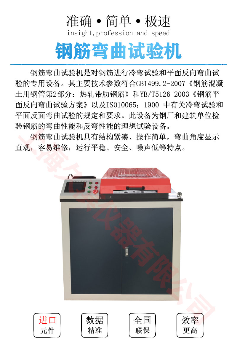 鋼筋彎曲試驗機是對鋼筋進行冷彎試驗和平面反向彎曲試驗的專用設備。其主要技術參數(shù)符合GB1499.2-2007《鋼筋混凝土用鋼管第2部分:熱軋帶肋鋼筋》和YB/T5126-2003《鋼筋平面反向彎曲試驗方案》以及ISO10065:1900 中有關冷彎試驗和平面反面彎曲試驗的規(guī)定和要求。此設備為鋼廠和建筑單位檢驗鋼筋的彎曲性能和反彎性能的理想試驗設備。