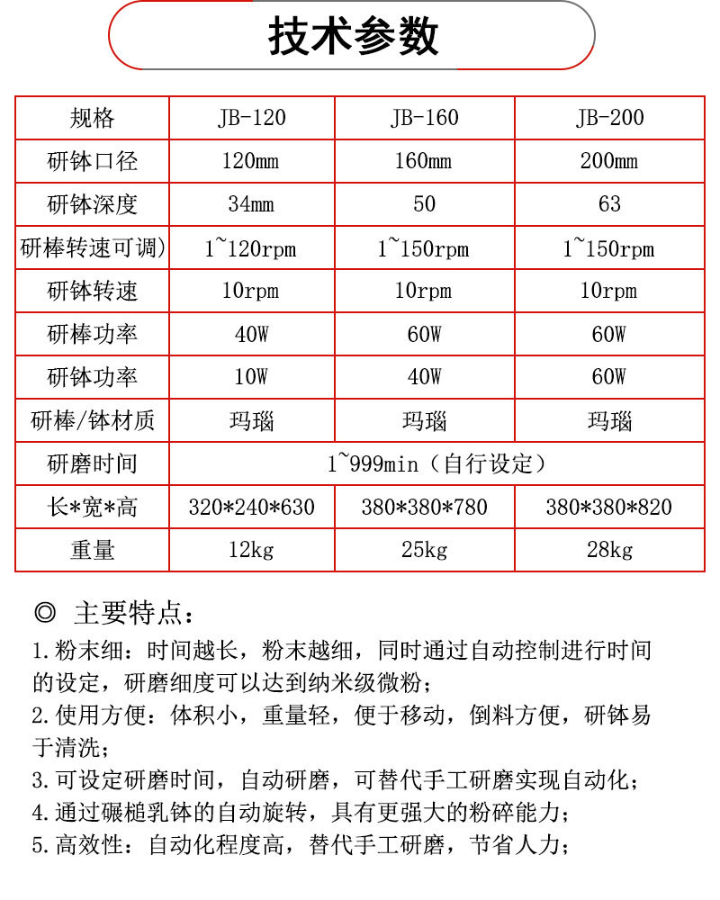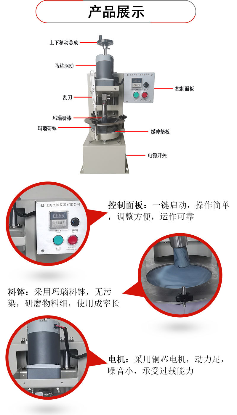 電動(dòng)瑪瑙研磨機(jī),具有操做簡單,研磨細(xì)度可達(dá)微米級。替代了以往的研缽繁重的手動(dòng)研磨,解放了雙手、節(jié)省了時(shí)間,碾磨效果也遠(yuǎn)遠(yuǎn)超過手動(dòng)的研磨。