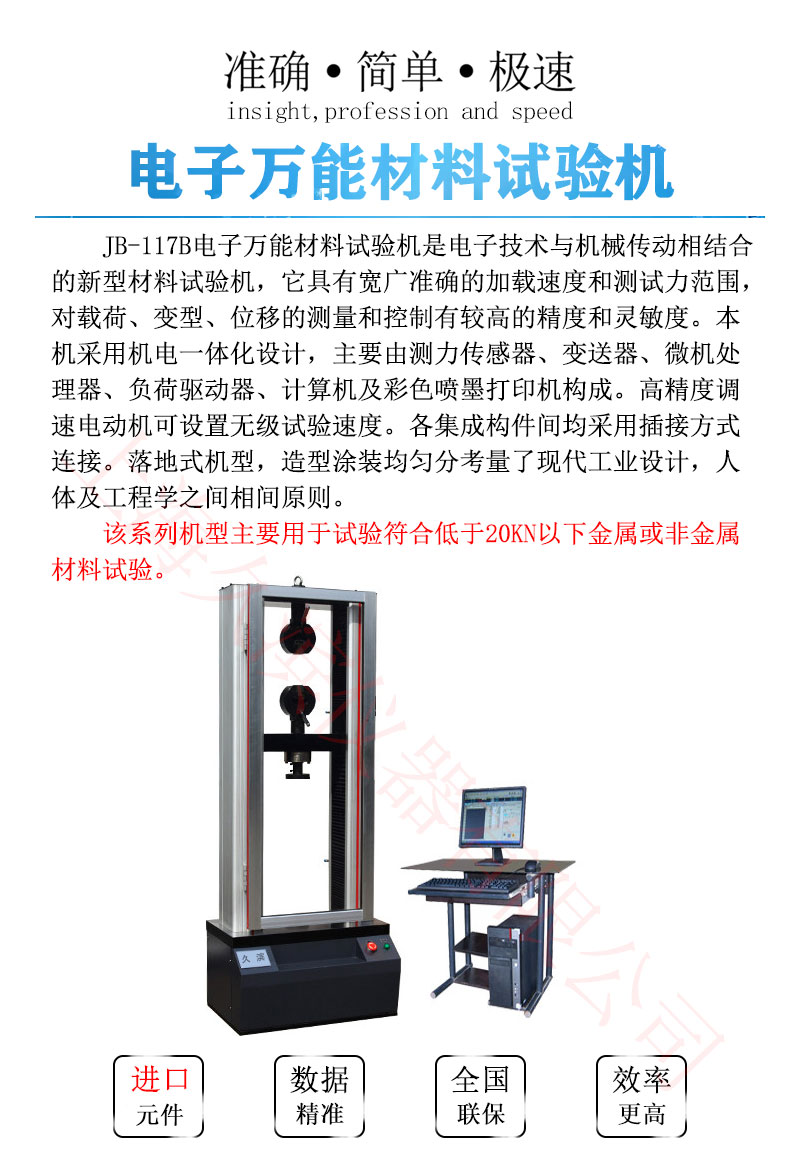 JB-117B電子萬能材料試驗(yàn)機(jī)是電子技術(shù)與機(jī)械傳動(dòng)相結(jié)合的材料試驗(yàn)機(jī),它具有寬廣準(zhǔn)確的加載速度和測(cè)試力范圍,對(duì)載荷、變型、位移的測(cè)量和控制有較高的精度和靈敏度。本機(jī)采用機(jī)電一體化設(shè)計(jì),主要由測(cè)力傳感器、變送器、微機(jī)處理器、負(fù)荷驅(qū)動(dòng)器、計(jì)算機(jī)及彩色噴墨打印機(jī)構(gòu)成。高精度調(diào)速電動(dòng)機(jī)可設(shè)置無級(jí)試驗(yàn)速度。各集成構(gòu)件間均采用插接方式連接。落地式機(jī)型,造型涂裝均勻分考量了現(xiàn)代工業(yè)設(shè)計(jì),人體及工程學(xué)之間相間原則。