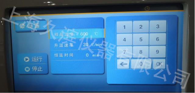 a. 如圖1.3點(diǎn)擊【升溫速率】進(jìn)入設(shè)置升溫速率界面,點(diǎn)擊數(shù)字鍵,輸入所需要設(shè)置的升溫速率。 b. 點(diǎn)擊【OK】結(jié)束設(shè)置升溫速率。 差示掃描量熱儀的運(yùn)行界面: