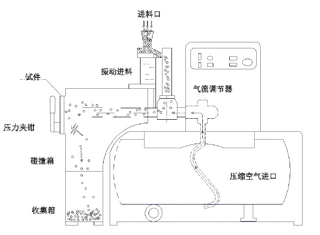 試樣安裝在與石子沖擊方向60°或90°角的位置上,連續(xù)噴射,重復沖擊10次,沖擊材料:直徑為9~12mm花崗石或大理石石子。